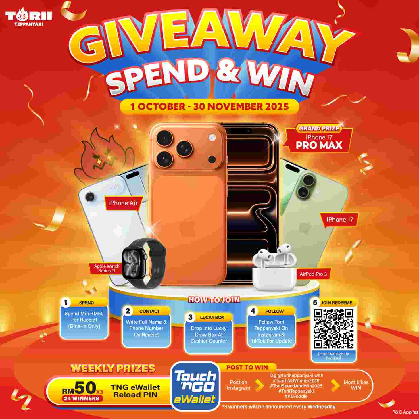Eat, spend & WIN BIG with Torii Teppanyaki!